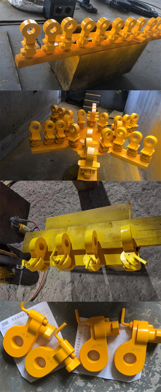 产品简介: 集装箱吊具用于集装箱起吊,为了适应不同的集装箱堆放方向、集装箱拖车行走方向,和为扩大起重、起吊的作业范围,可使集装箱索具在空载或满载时都能自由旋转与控制,以提高装