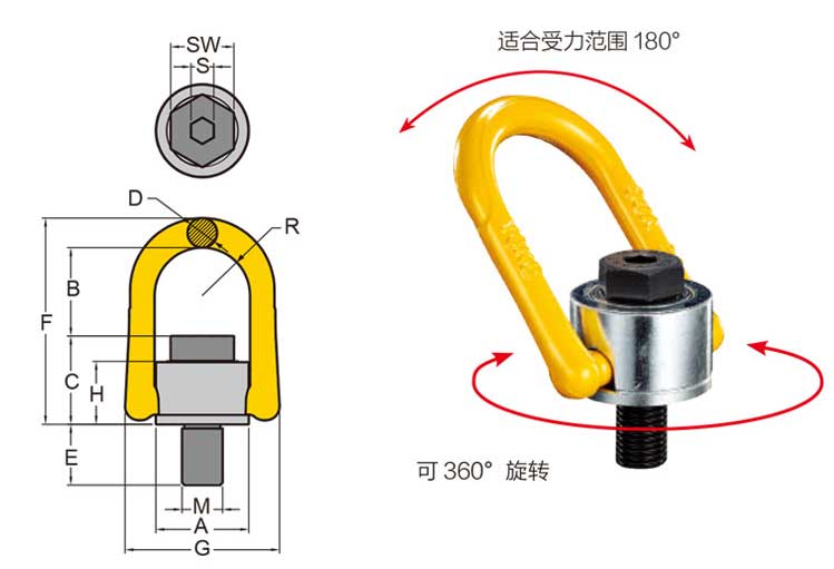 产品简介:*安全起重旋转吊环上所采用的锻造合金钢均经过淬火和回火处理。*安全起重旋转吊环所有锻造件以及有头螺栓上都印有批次编号,以便于在质量追溯上进行检查核对。*安全起重旋转吊环咨询热线:0536-8262109